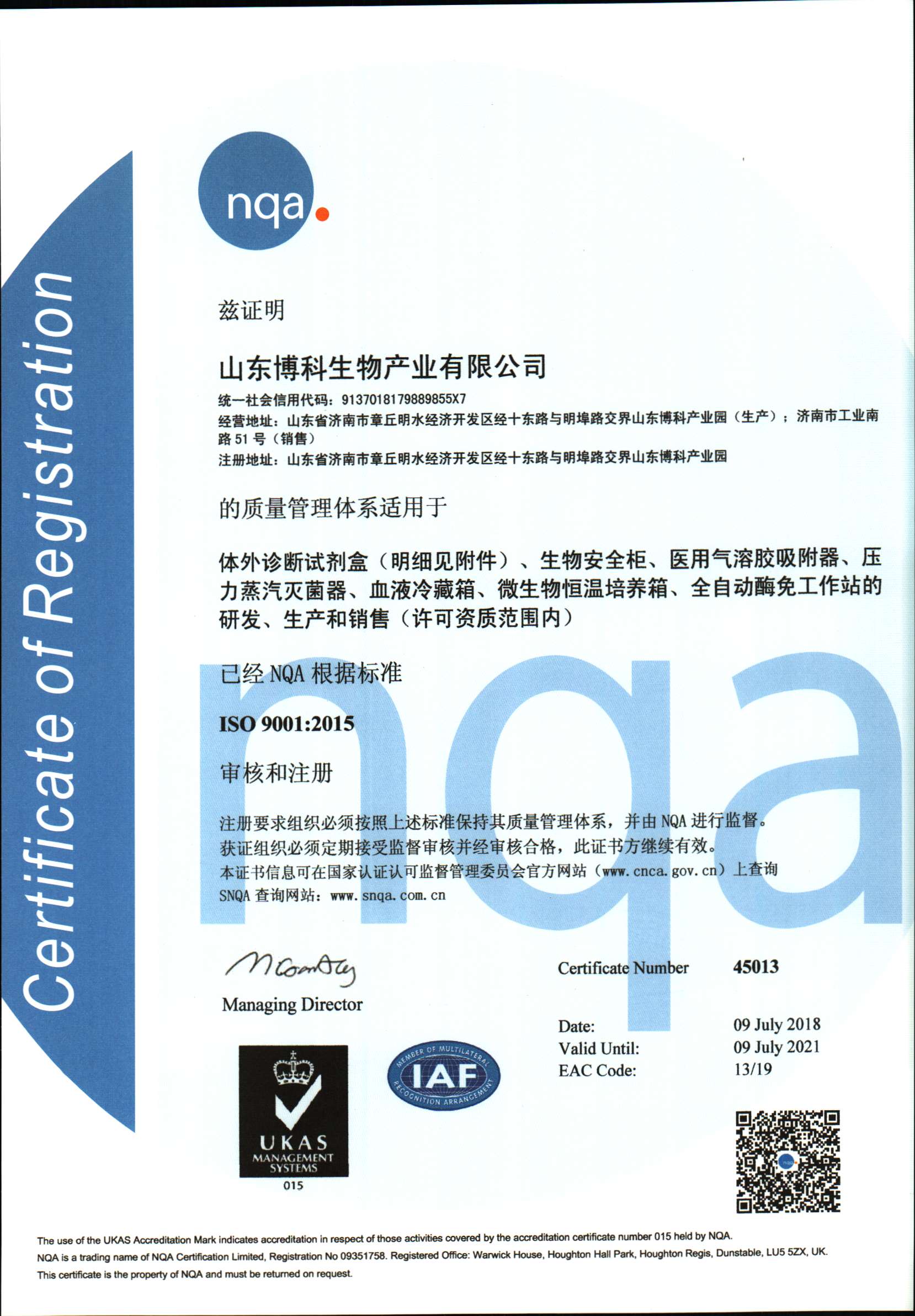 當前位置:首頁>新聞中心 > 新聞資訊> 熱烈祝賀博科通過ISO9001及13485體系換版認證