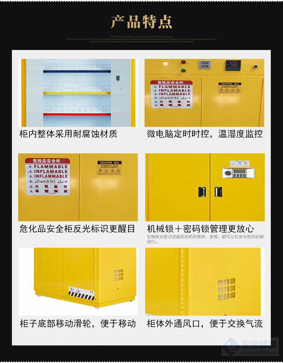 2、易燃品毒害品儲存柜體內膽(上,下、左、右內襯板)全部采用實芯理化板或pp(聚丙烯樹脂)板;