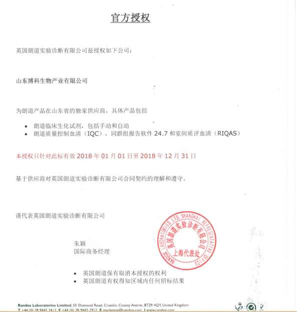 【更多】熱烈祝賀博科生物續簽英國朗道山東獨家代理熱烈祝賀博科生物續簽英國朗道山東獨家代理2017年度,博科生物與RANDOX 朗道的合作,取得了非常好的成績。2017年是朗道在中國區改革的第一年,在此過程中憑借朗道優質的產品質量和博科生物優秀的業務及售后團隊,博科生物緊跟國內形勢…