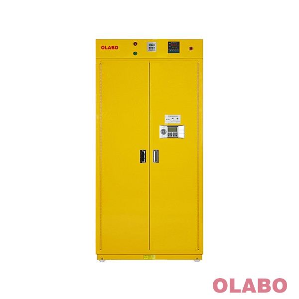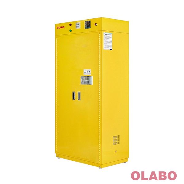 1.易燃品毒害品儲存柜外殼體全部采用1.5mm的冷軋鋼板,柜體底座采用2.0mm的冷軋鋼板,內外表面經酸洗磷化環氧樹脂粉末噴涂,烘熱固化處理。