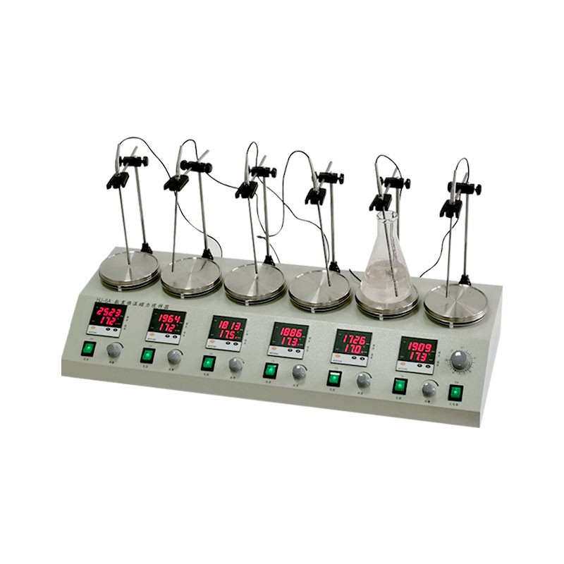 歐萊博HJ-6A數顯恒溫磁力攪拌攪拌功率40W*6RT-100數顯顯示溫度帶定時功能