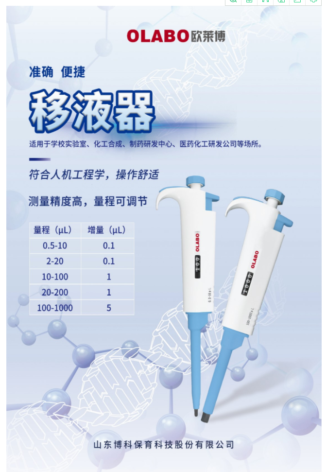當(dāng)前位置 > 首頁 > 產(chǎn)品中心  > 樣品處理 > 移液器> 國產(chǎn)OLABO,B系列單道可調(diào)式移液器100-1000μl
