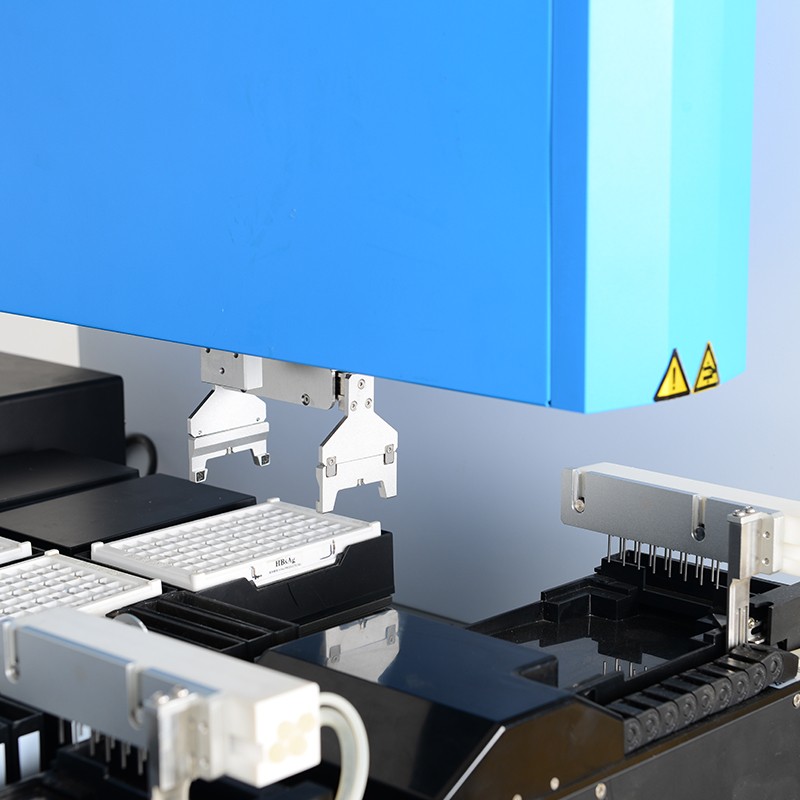 十一、機(jī)械臂:二個(gè)智能機(jī)械臂,一個(gè)用于標(biāo)本和試劑分配,一個(gè)用于抓板;配備全智能壓力感應(yīng)式機(jī)械抓手,壓力感應(yīng)系統(tǒng)實(shí)時(shí)監(jiān)測抓板狀態(tài),防止掉板。